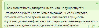 Но у них нет даже определения, что такое пространство. (Да, у меня есть). Ребята, всё прошлое - оно вот здесь, прямо здесь и сейчас, и другого у вселенной для вас нет".