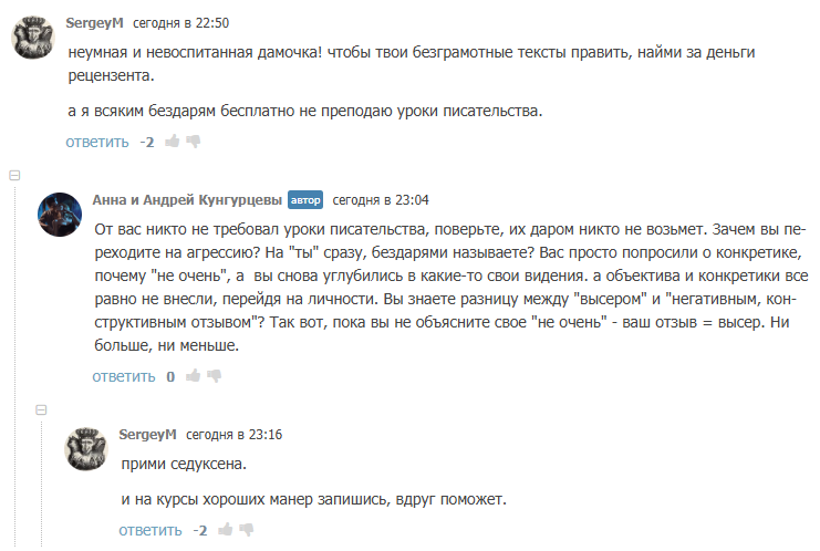 Ты наверное забыл уточнить, что сам вёл себя аки быдло и приложить последние сообщения. заметь, тебя ниразу не оскорбили а ты сразу "невоспитанная дамочка" "бездарь" "седуксен" "манеры". Ну выставил ты себя идиотом и че дальше?![]()