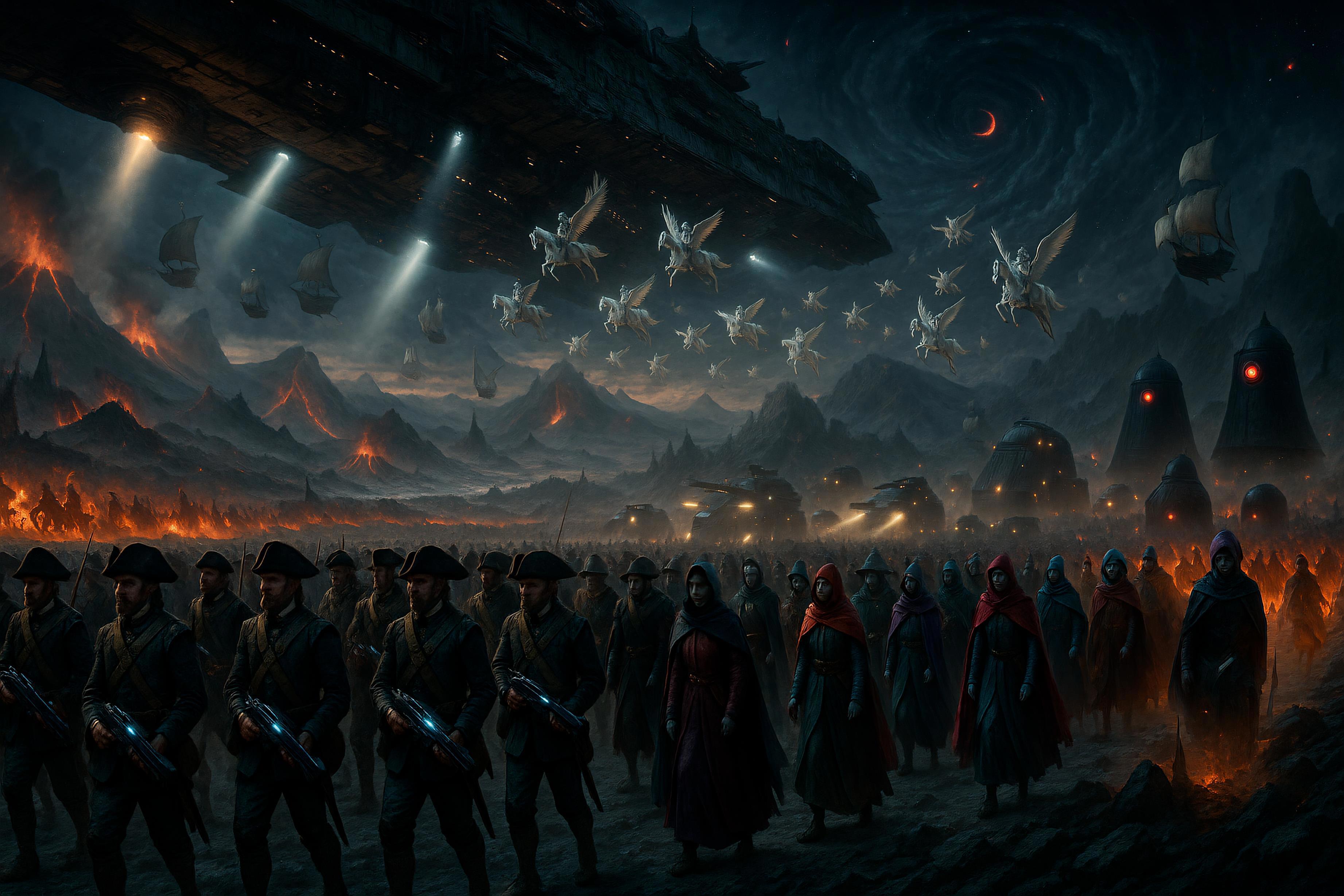 У меня тут завалялись арты из карточной игры. Делал штук 150 на скорую руку, по 1-2 попытки на карту. Вот некоторые более-менее удачные. Может что-то понравится.