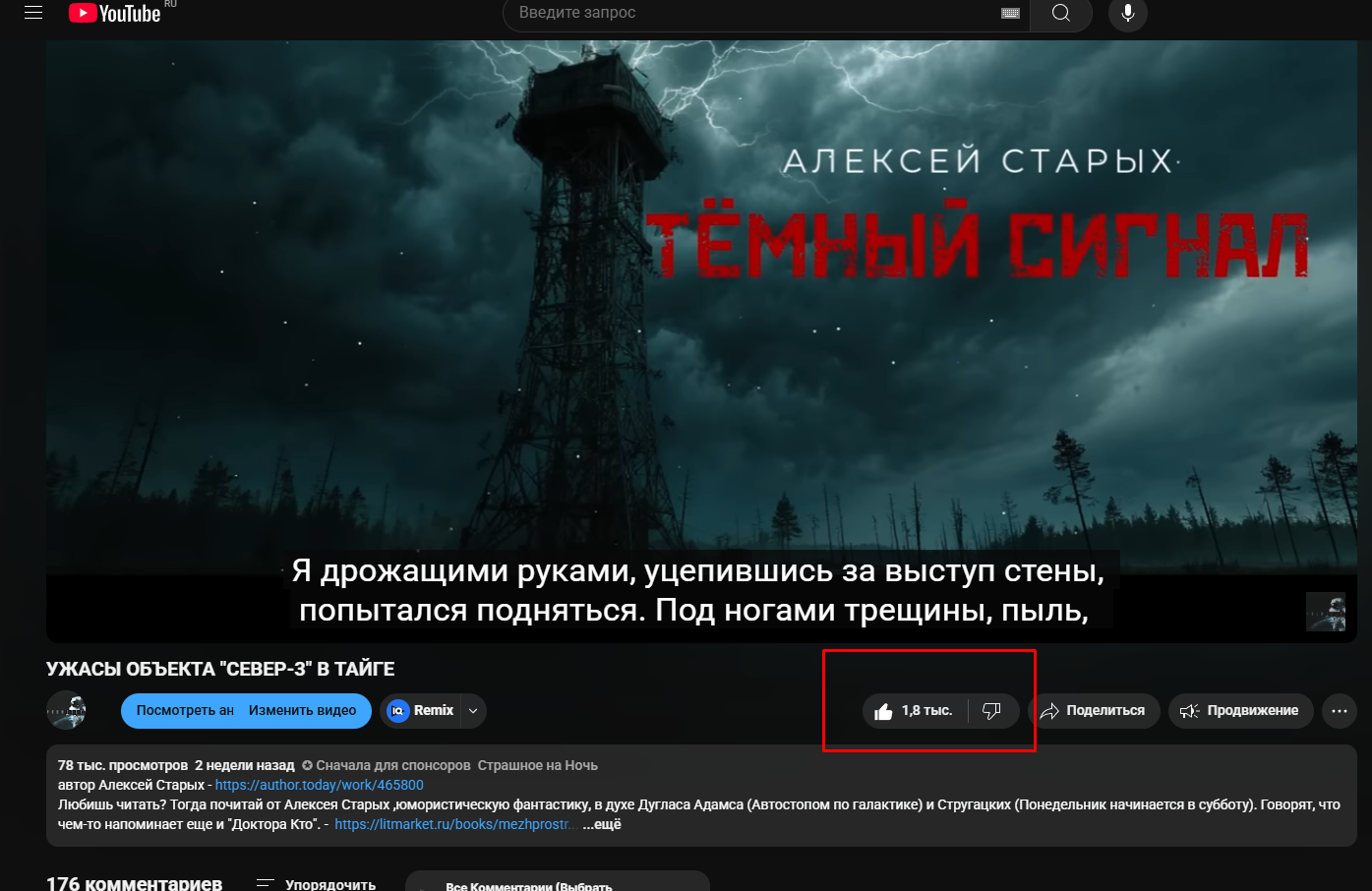 Ещё раз напишу,что рассказ суперский) Если вам не понравилось, зато нашим подписчикам понравился рассказ! И он набрал в такое время,когда людям не дают смотреть ютуб, почти 80к просмотров и 1.8тыс лайков!