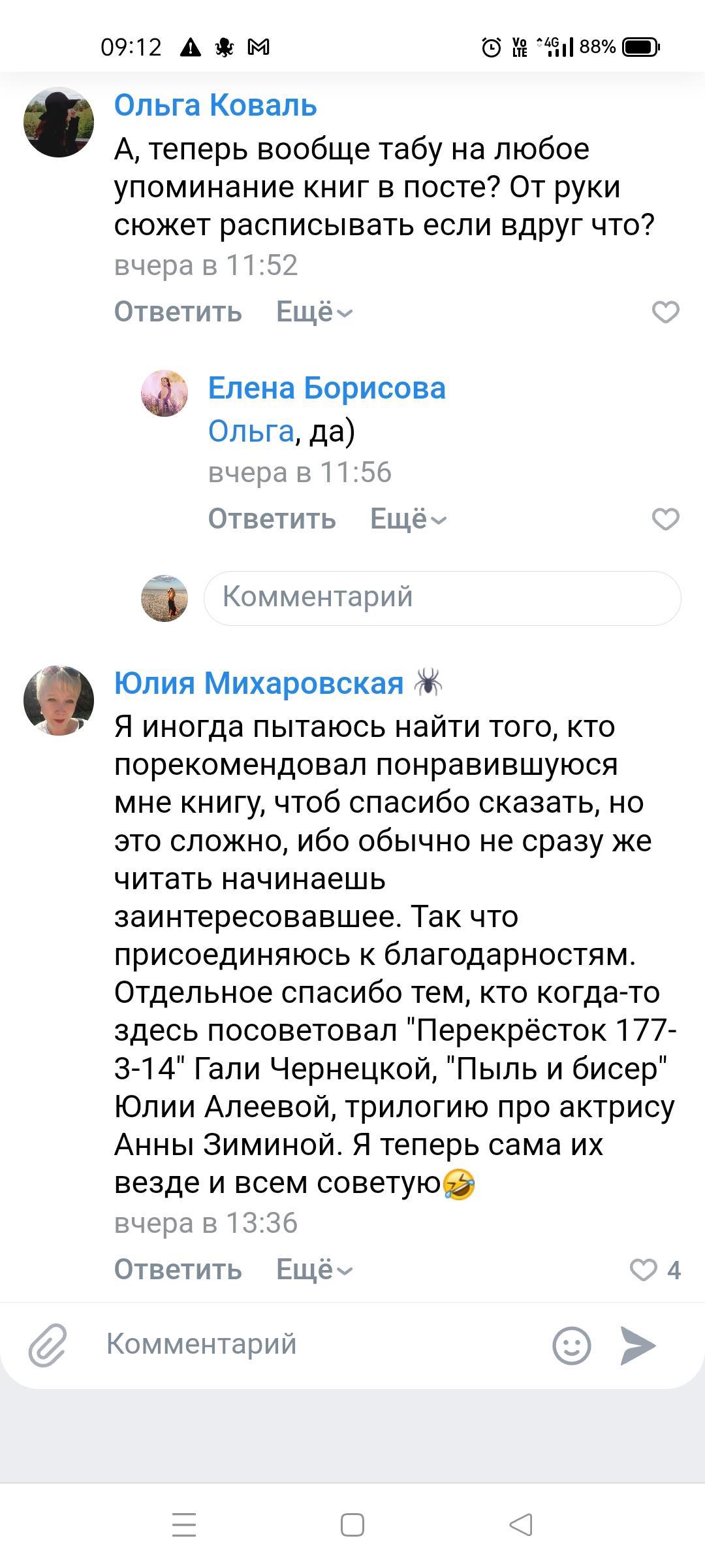 Это моя последняя книга, очень рада видеть на нее отклик, без обратной реакции тяжело писать. А слог - это ещё и дополнительное время работы над текстом. Иногда хочется писать проще, но быстрее, чтоб больше читателей, больше откликов. А потом понимаю - ну не могу так. Так что спасибо, что отметили.