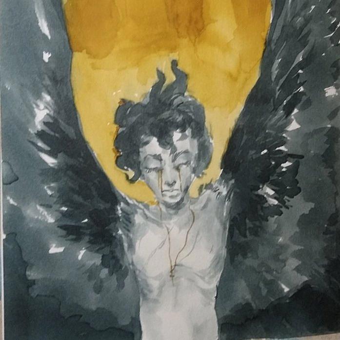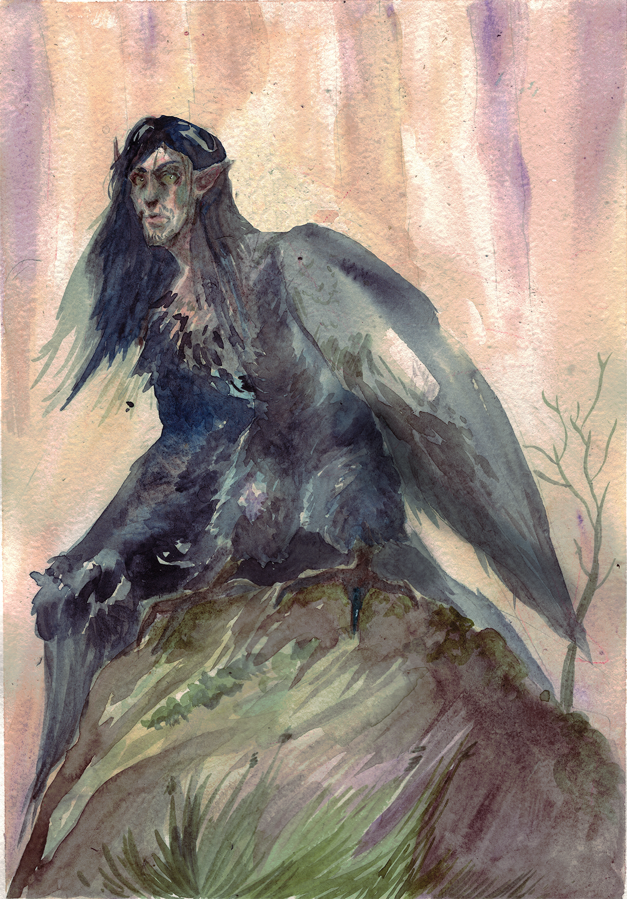 Как-то даже неловко писать сюда, когда новичок, но надеюсь тут обжиться. Закончила последнюю иллюстрацию: акварель, тушь. Кажется, Эколайновская акварель хорошо сходится с иссиня-серой тушью офисной...