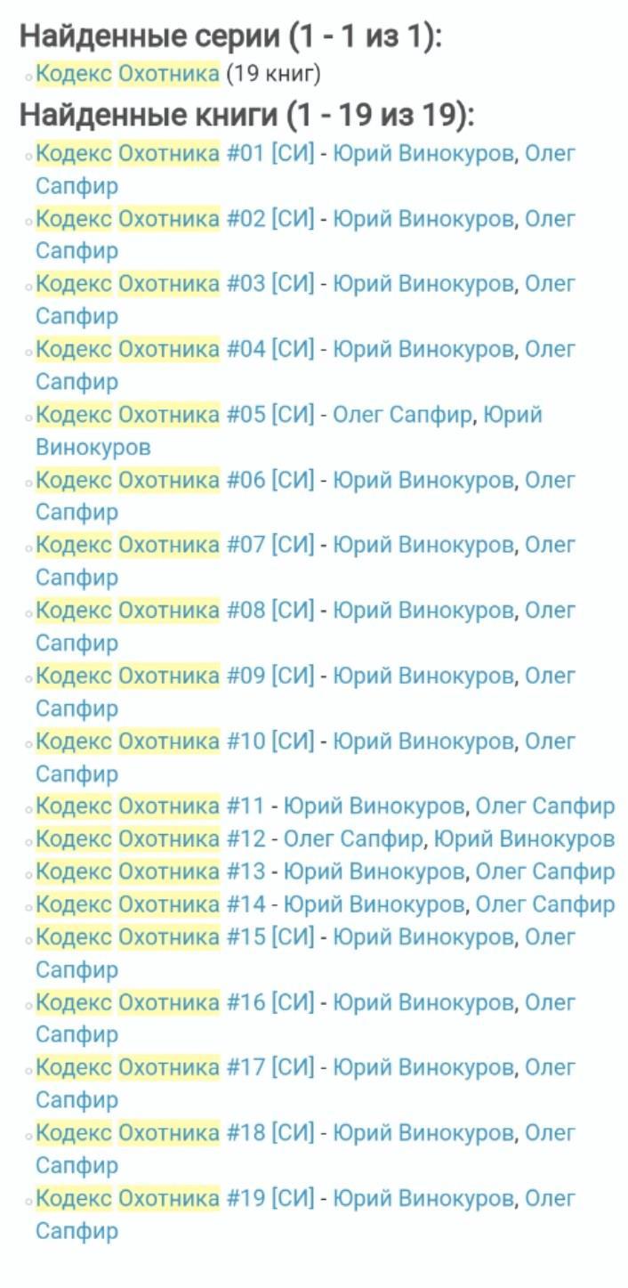 По автору Сапфир Олег все циклы в одно сплетаются. Главный, чувствуется, кодекс охотника.