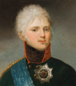 написано: "Портрет отражает новшества в военной форме, введенные Александром I уже в первый год восшествия на престол. Это – военный мундир нового образца с высоким стоячим воротником и прическа с коротко стриженными по французской моде волосами, запрещенная при Павле I, которую первое время носили еще по традиции XVIII века «под пудрой».