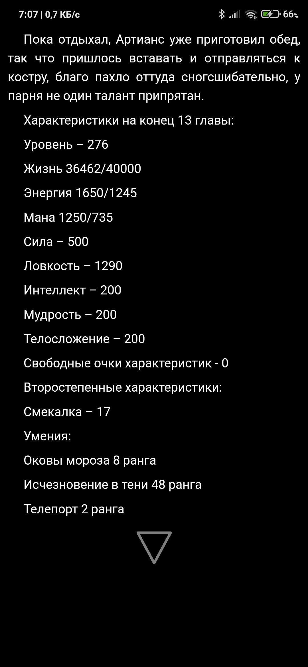 Здравствуйте. В конце 13 главы в статусе гг перепутали значения в энергии и мане