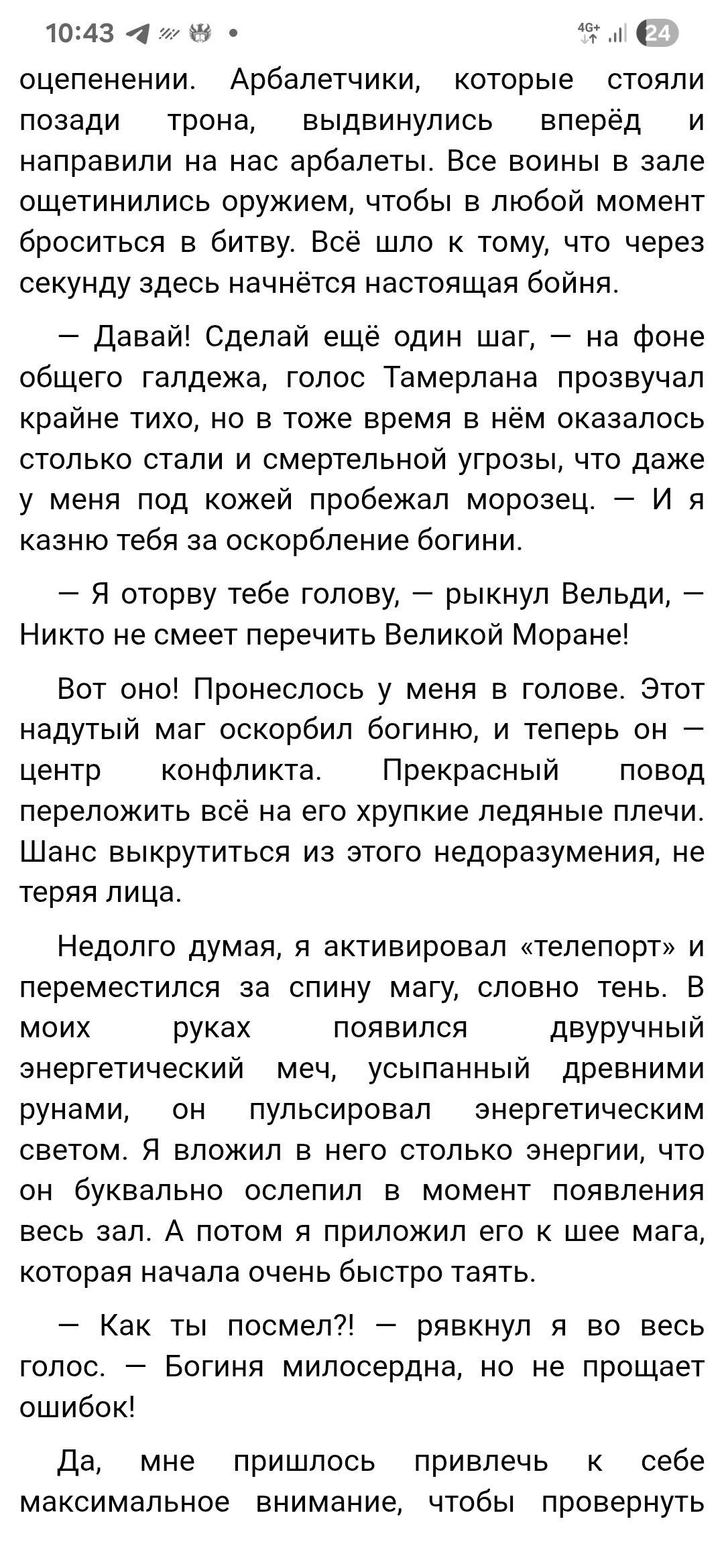 Серия прикольная. Прочитал залпом от 1 книги до 3 главы 36й :) конечно, когда читаешь так много подряд - видно, что периодически автор забывает что сам писал ещё недавно (например то, что гг Тамерлана с Вельди специально не обучал языку ледяных, а они там спокойно потом говорят, или ещё в прошлой книге Лена с Шейлой не могли общаться, а в этой уже "я же тебе говорила"). Но, если делать скидку на это - серия хорошая, автор продолжай в том же духе, спасибо за серию)