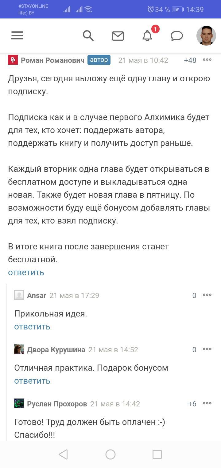 Я ни капли не жалею, что оплатил данное произведение. Мне очень нравится творчество Автора, и мною прочитаны почти все его книги, что-то на АТ, что-то на других ресурсах. Но я читаю много книг и не всегда есть время следить за комментариями. Вопрос в том, совершить благодарность специально или неосознанно? Я хотел прочитать книгу, я ее оплатил и не был в курсе каких-то привилегий. Случайно увидел в библиотеке, что она бесплатна и возникло мимолетное неприятное чувство. Только перечитав все комментарии к книге, обнаружил, что таким образом Автор дал возможность поддержать серию. Если бы Автор добавил комментарий выше после аннотации книги, то больше людей сделали бы это осознанно, и аудитория была бы более лояльна. Никакого негатива к автору нет, просто для информации при публикации следующих серий (Очень надеюсь, что они будут).