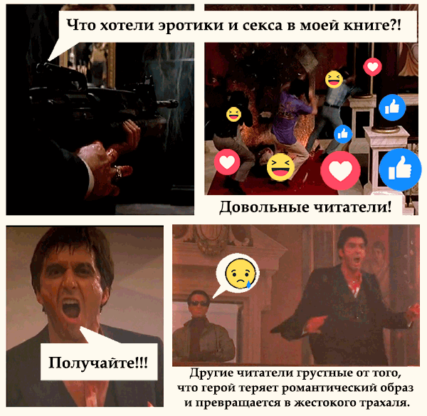В первой книге норм игрушки заходили, вернее входили) да и в сцене с Эмирой скорей девица своим бешеным поведением калечила, не промежностью. А вообще вот ведь бабы, проблема то решается, немного  травки и пара колодок из БДСМ, чё мужиков то калечить?! Представляю раскумаренную  и расслабленную Эммиру с блаженной улыбкой в колодках, а сзади Фейрат с здоровенной анальной пробкой в заднице, натягивает её. При каждом толчке принцесса ещё и бздит понемногу, настолько ей хорошо!