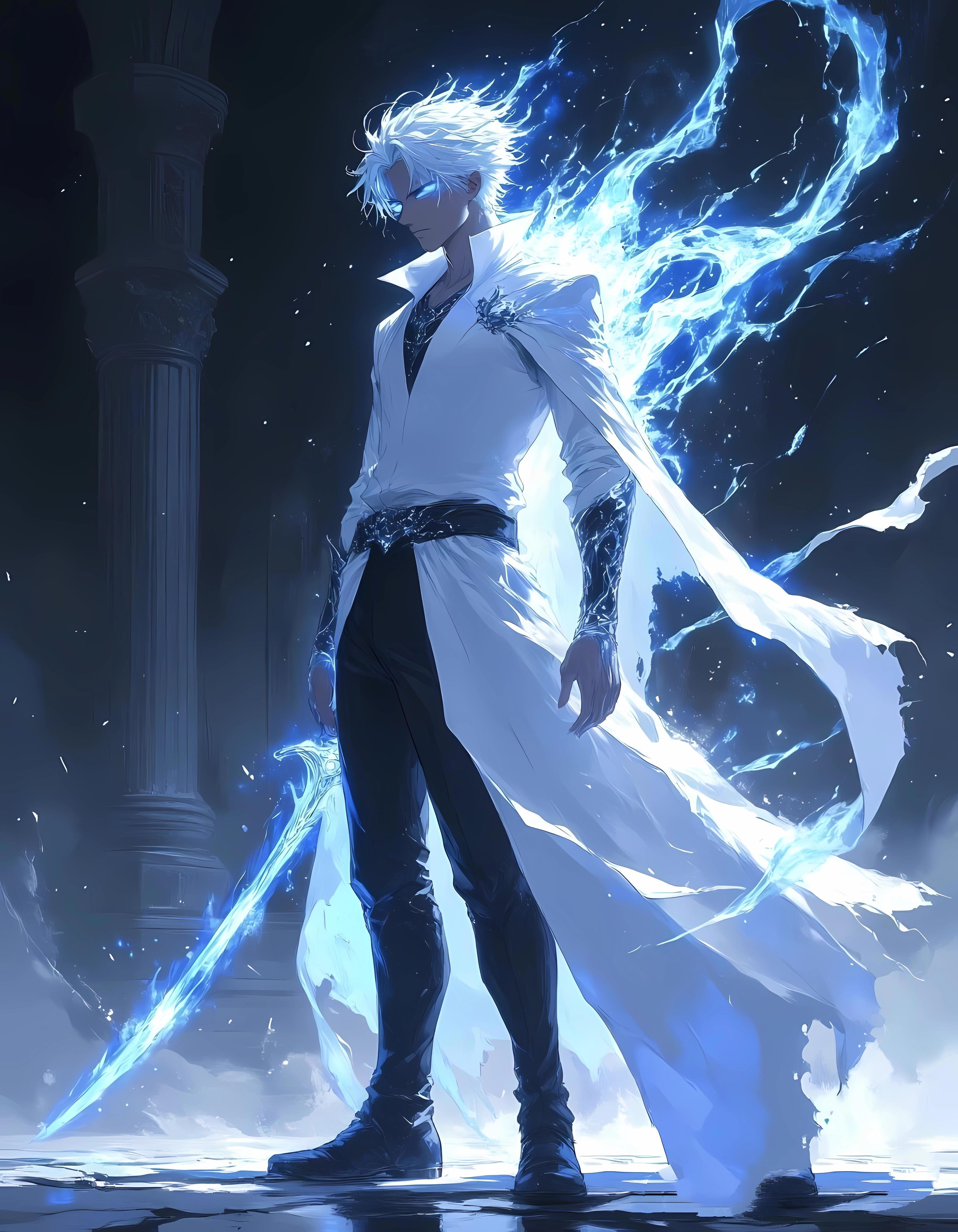 ...Высотная фигура в белоснежной рубашке, распахнутой на груди, и черных свободных штанах, заправленных в высокие сапоги, возникла прямо из воздуха. Морозные снежинки, кружась, опадали с длинного плаща на мраморный пол, который тут же покрывался корочкой льда. Можно на коньках кататься не хуже, чем по озеру.