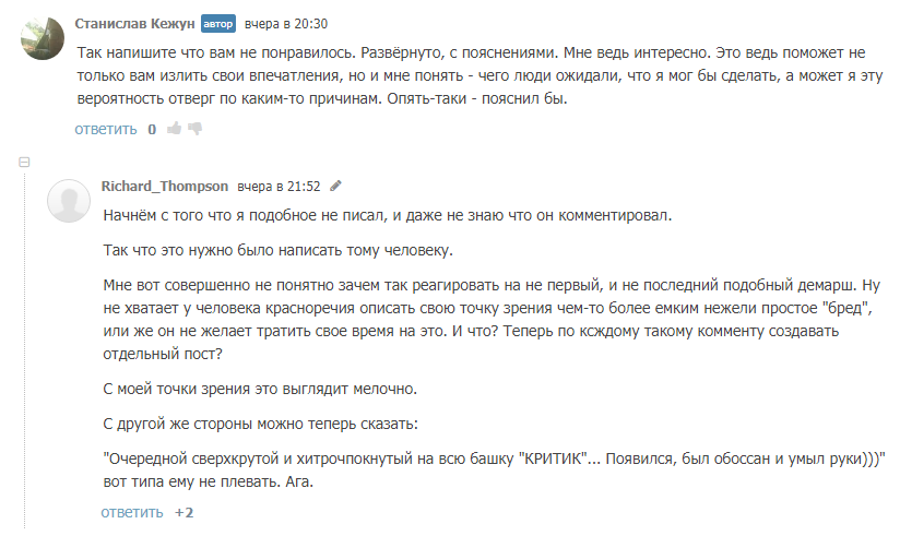 "Очередной сверхкрутой и хитрочпокнутый на всю башку "КРИТИК"... Появился, был обоссан и умыл руки)))" вот типа ему не плевать. Ага.