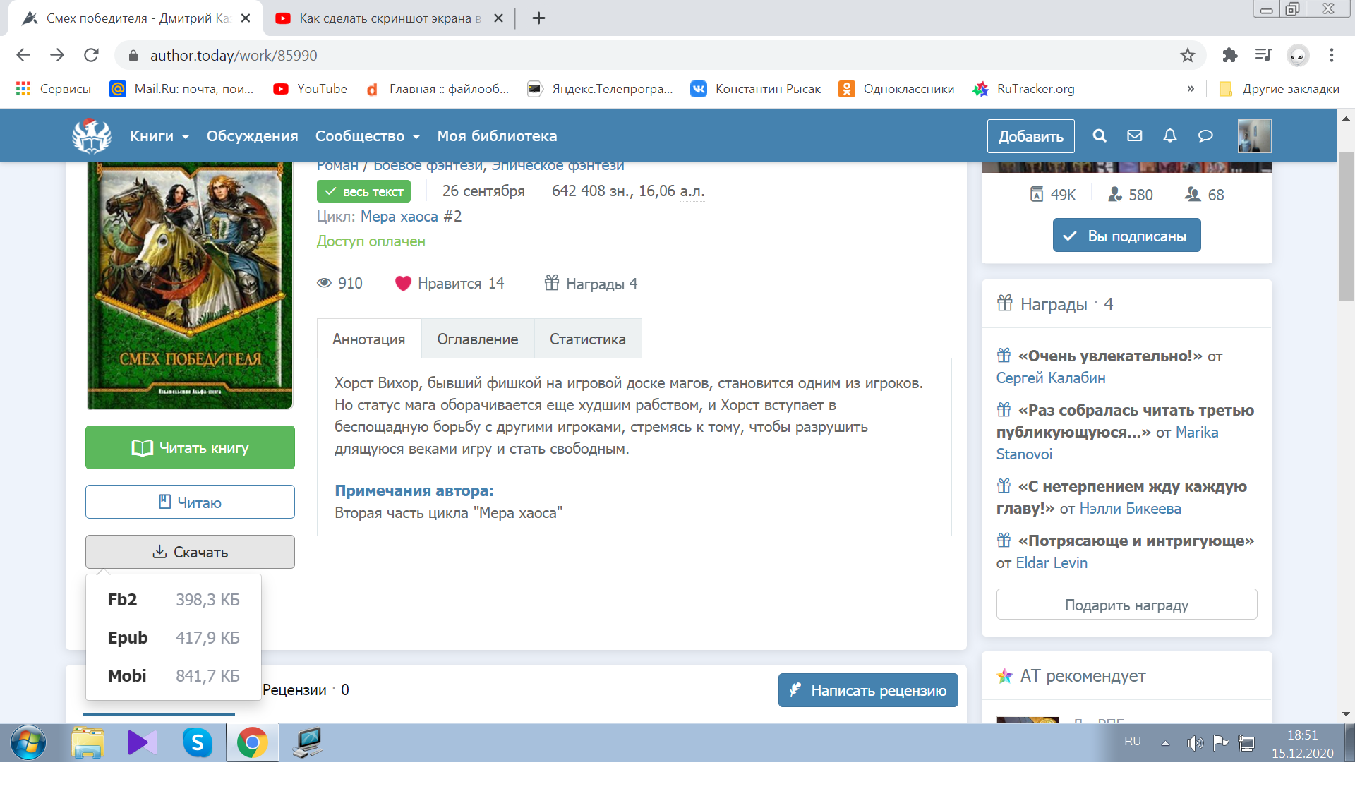Полную версию можно прочесть только на сайте. Скачать невозможно, только 398кб . Очень неудобно. Сама книга хороша.