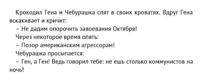Читаю отзывы. Интересно. А вот если бы коммунисты победили капиталистический враждебный ИИ? Было бы интересней? Создается впечатление, что как только рецензент обнаруживает, что мировоззрение автора идет не "верной дорогой", то визави сразу и "сидит не так и свистит не этак". И Навал... (ой ой те кого нельзя называть) мешают и лесбиянки при Сталине описаны скучно. Но отзывывы полезны. Познавательно. Сразу понятно кто и чем мозг грузить будет-) И да, навеяло вдруг из юности, о Гене и Чебурашке.