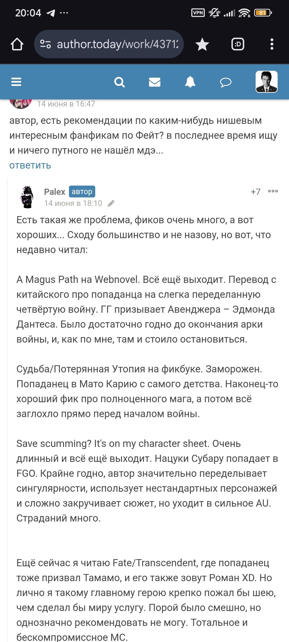 От себя могу добавить: Fate/World всё ещё выходит на Webnovel.