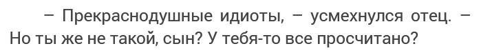 Да, вот именно за такое детальное описание внутреннего разговора, эмоций и нравится книга. Да, есть неровности, но как по мне - автор еще распишется и заматереет, все предпосылки для этого есть. Спасибо!