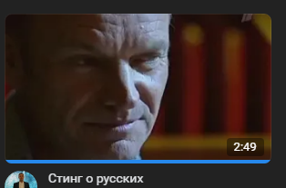 И, когда Стинга (британский музыкант) спросили, почему он написал песню про плохого русского, он ответил что так принято воспринимать русских в их мире. Но, когда он в начале 80-х (вскоре после исполнения той песни) увидел советское ТВ, и там шла программа для детей, и он тогда понял, что такой добрый материал для детей, не могут сделать плохие люди.