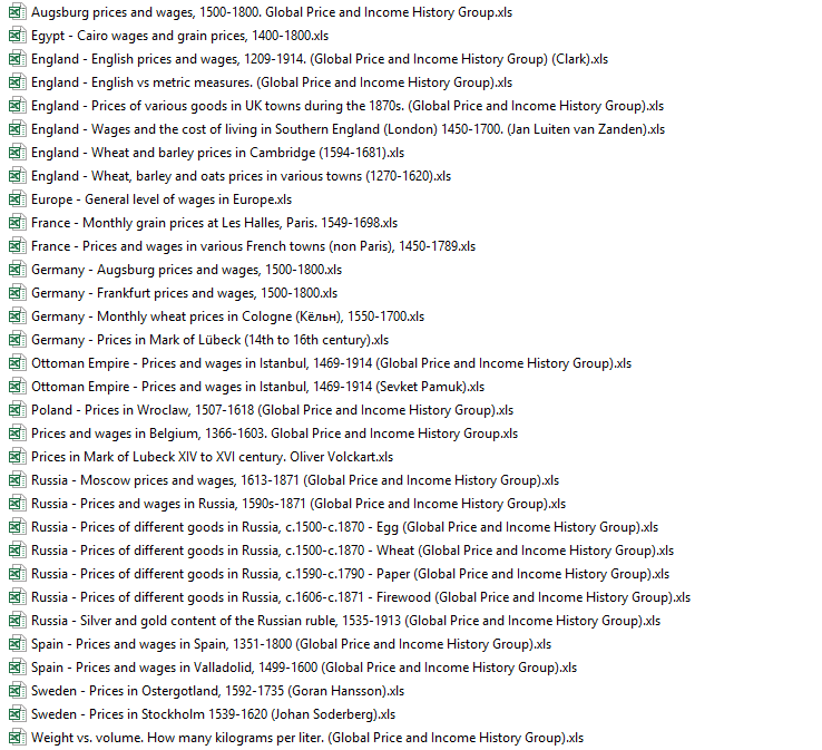 В частности - Moscow wage and price detailed data 1553-1851.xlsx