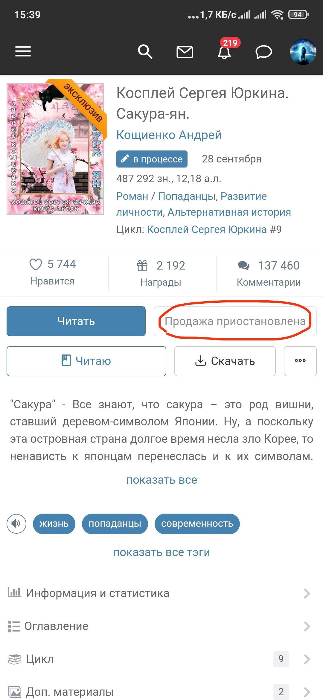 Хорошо. Я понял свою ошибку, умник. Исправляюсь, обрисовываю ситуацию. У меня (возможно и у остальных читателей кто не успел приобрести книгу) нет кнопки "Купить", вместо нее "продажа приостановленна". В этом и заключается мой вопрос к тем людям которые возможно знаю, а судя по твоему ответу мне ты ничего не знаешь. Так что совет тебе на будущее. Если видишь подобный моему вопросу, но при этом не вдупляешь почему его задали то просто пройди мимо и забудь, потому что ты явно чего не знаешь. Хотел выставить себя умником с помощью игры слов, а в итоге получилось наоборот - выставил себя идиотом.