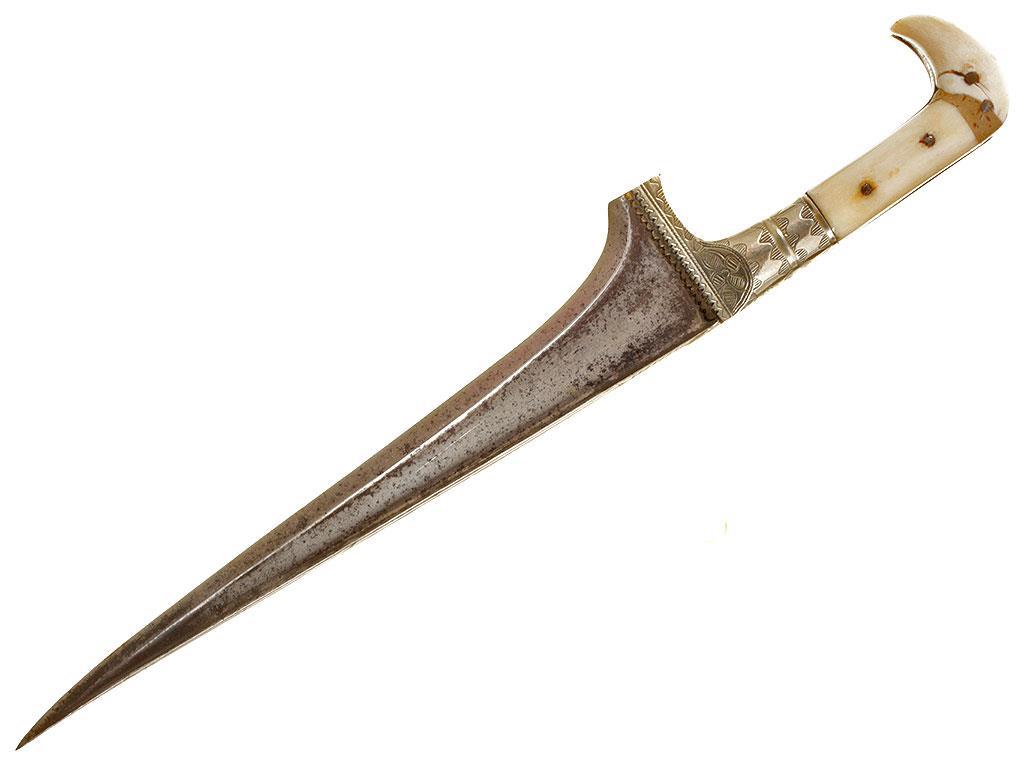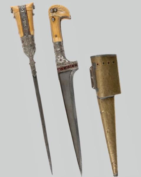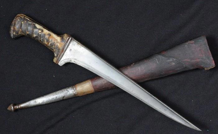 В случае с покушением скорее всего использовался бы не тяжёлый и громоздкий салавар ятаган ( местные его чаще чурай называли), а более лёгкий нож чура, он заметно короче - клинок около 20 см плюс -минус 2-3 , его легче прятать и колоть удобнее - он для того и создан. Выглядит примерно так
