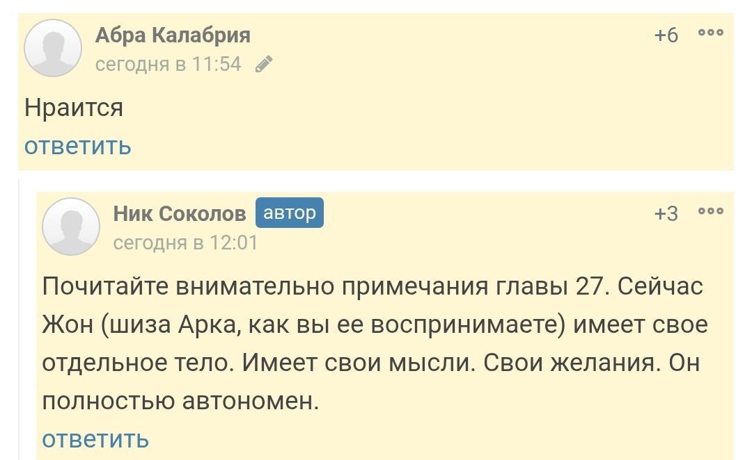 Притопает живой гримуар, и можно пропасть лет на 50-100 чисто на изучения теории магии с её колокольни... которая переросла вавилонскую ага. Ну и организацию создаст, с абсолютным главенством в вопросах связанных с магией и магами потому что может... где будет обучать ограниченный круг психонавтов, но это частности. О чём я? Когда этот институт мог бы выйти из проекта в реализацию будет самую малость поздно... ибо да, Зерие. 12 глава всё ещё сильно давит, и хочется накидать больше спойлеров, но не... нельзя так сразу.