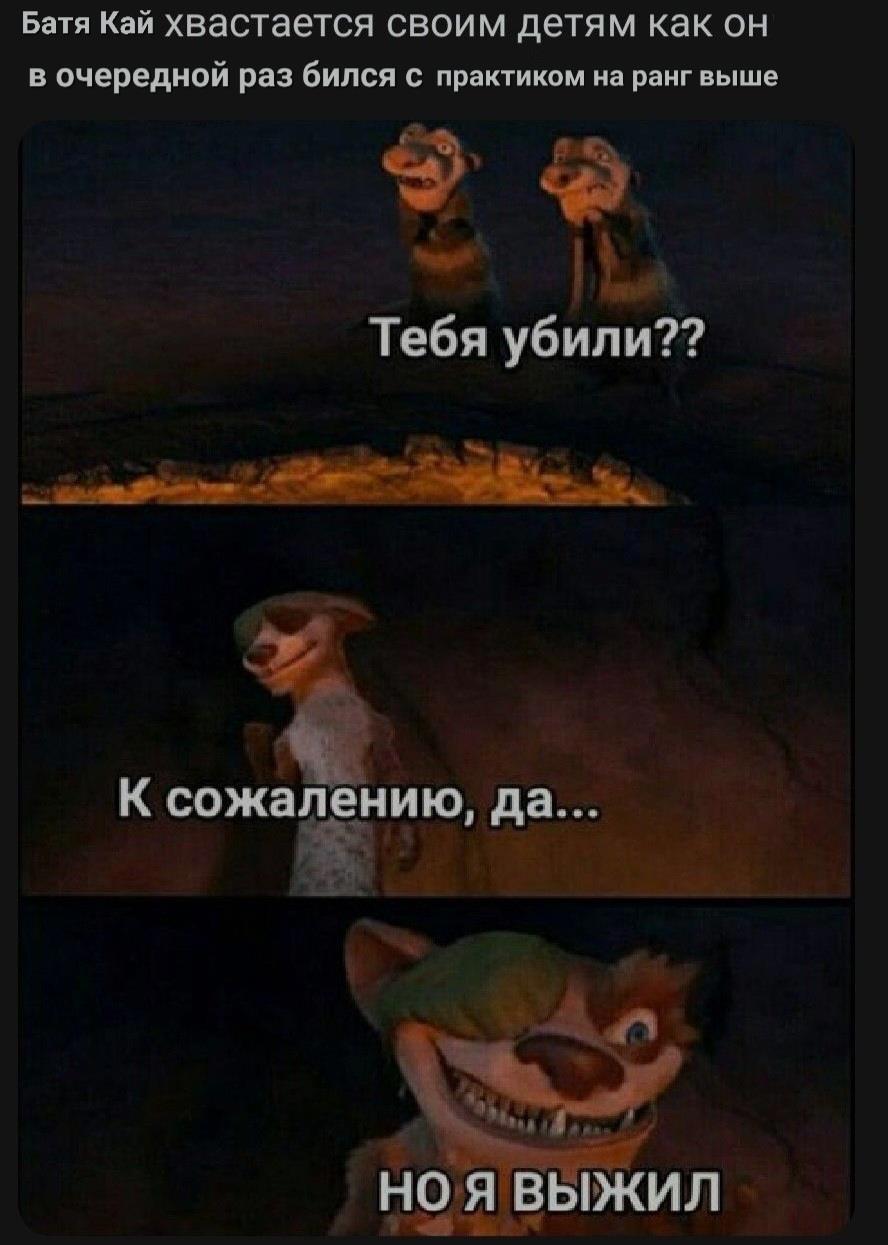 Ни разу не похоже на жареного цыплёнка(да, я про Кая). Мало эмоций, частичка несвойственной ему здоровой паранои и... слишком много смирения. Ну и не ляжется с пренебрежением и откровенным игнором урона по себе, которое Кай ни раз демонстрировал.