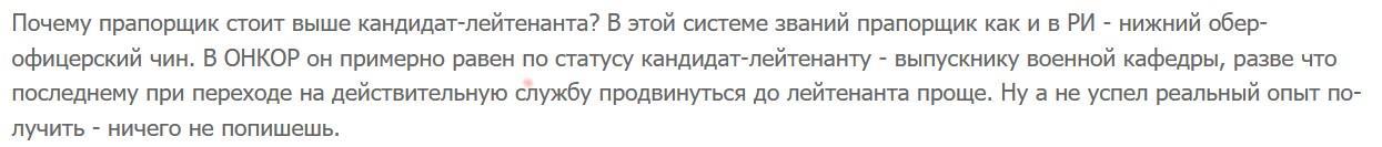 И комментарий о том, что в ОНКОР прапорщик стоит выше кандидат-лейтинанта.