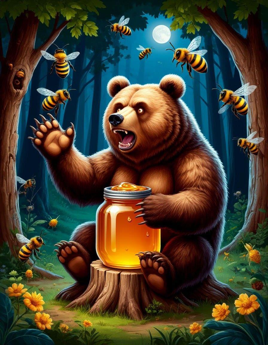 Или вот. Летне-осеннее. Милое! Вот и докажи им, что мёд честно купил, а не стырил!)))