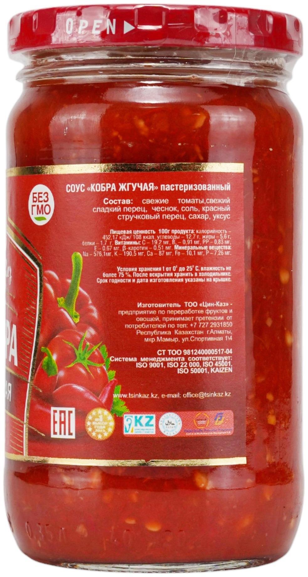 Если на литр кобры добавить таблетку аспирина, то стоит до трёх лет в холодильнике. Хотя у бабушки и просто так стояла, не пробовал. Просто обычно делаем литров по 25 раз в два-три года :-) Состав Помидоры, острый перец типа болгарского, чеснок, хрен, соль. С пельменями, мантами, варениками, да даже просто на хлеб намазать классная вещь. Детям делаем поменьше перца и чеснока, себе побольше.