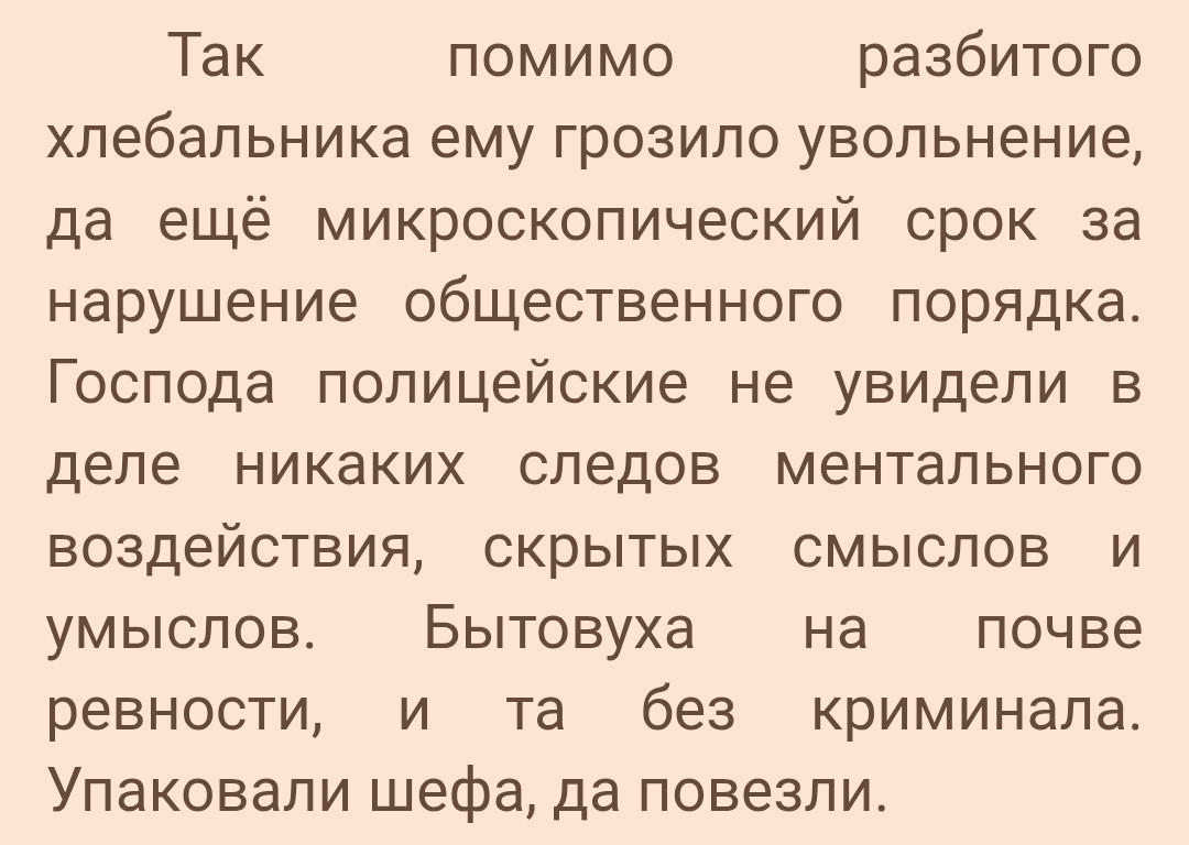 1. Как так вышло, что ГГ, повлиявшего на разум шефа, так спокойно отпустили? Точнее даже не так, с какого перепугу там не обнаружилось магического воздействия, как было написано в тексте? Ваську по логике должны были набутылить за незаконное подчинение шефа, а также причинение неудобств графине (что, вероятно, завершило бы произведение).