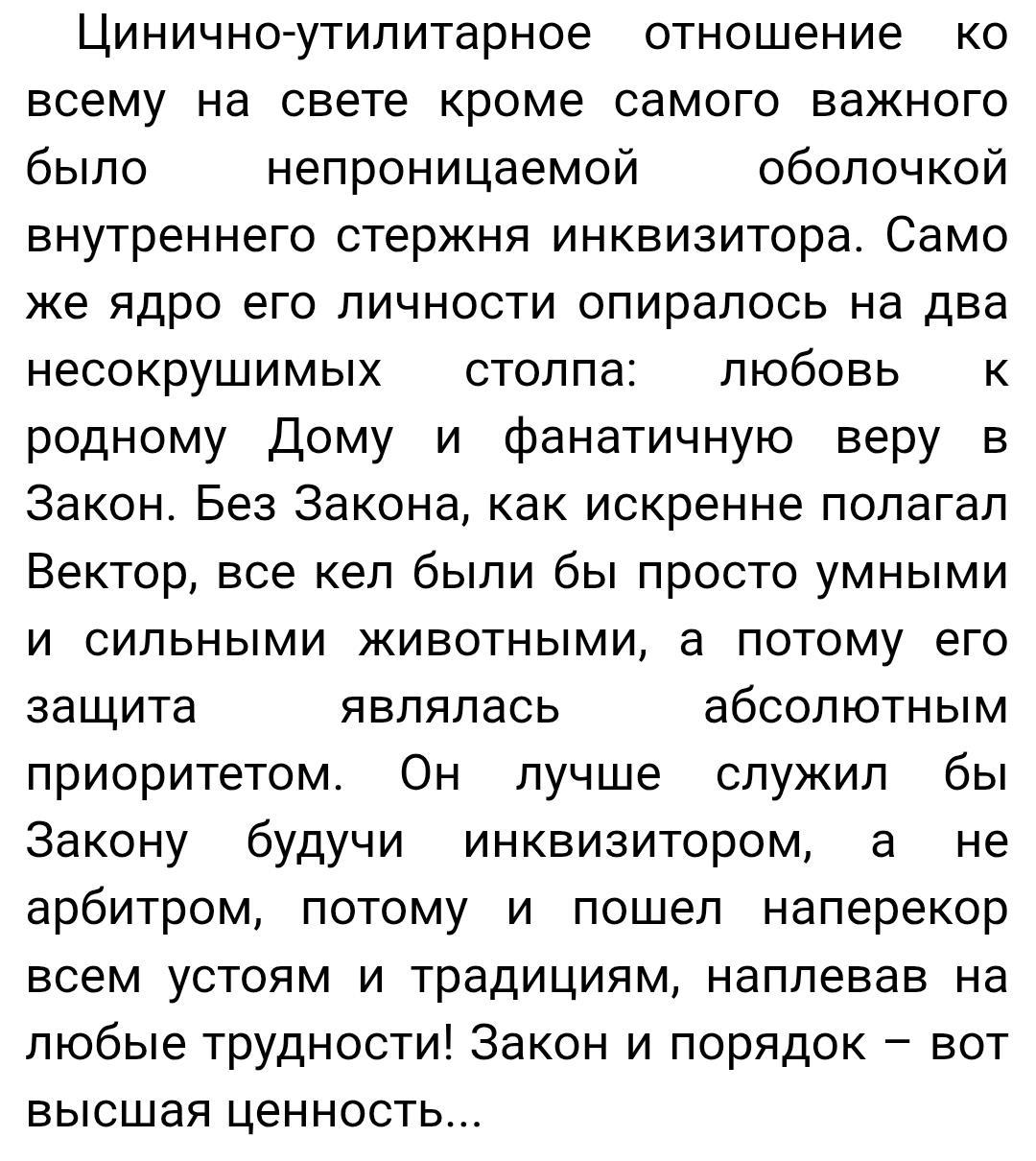 Последняя интерлюдия наголову выше остальных глав произведения) понятно, что предыдущие главы необходимы для введения в курс дела и в целом для повествования, но именно в этой интерлюдии как раз есть все, за что мы любим цикл ЗК. Это и взгляды на мир Вечности и Единства самими Кел, в особенности Кел Эмисс, и хорошая драка, и технологии Кел, новые руны и тд)