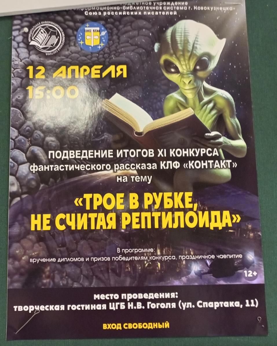 Вы будете смеяться, ноя сейчас как раз возвращаюсь с посиделки с писателями , которая быласегодня с 15 час в библиотеке им Гоголя на уо. Спартакав КЛФ Контакт, посвященна она была Дню космонавтики и итогам конкурса рассказов фантастики,там мы пили чаи,кофеи и болтали,обсуждали с издателями публикации будущие и с руковод отделения союза писателей за распил бюджета(распил не удался ).