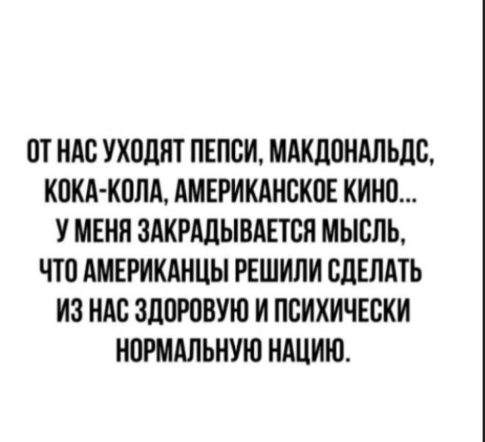 Мы жители Губахи, Пермского края, официально заявляем, что класть хотели на ваш пакет с санкциями. Хотим поблагодарить за то, что ваши социальные сети перестают работать в России, может быть теперь больше людей займутся реально полезными делами. Губахинцам вообще пофиг на закрытие H&M, Zara и другого говна. Если кому-то негде одеваться, приезжайте к нам в Губаху, у нас есть ТЦ Армада и Галион там есть всё! Сожалеем, что закрылась IKEA, 80% населения нашего города только из новостей узнала, что есть такой магазин, ведь у нас «Формула мебели». Санкции Apple и закрытие их фирменных магазинов для нас тоже не санкции, у нас в Губахе такого магазина не было. Санкции в отношении валютных счетов и зарубежной недвижимости даже комментировать не буду, мы очень расстроились, теперь губахинцы не смогут каждый выходные летать на свою виллу в Монако или Италию, придётся как и раньше ездить на дачу садить картошку - окучивать картошку и собирать урожай. Знаем про запрет нашим кошкам участвовать в международных выставках и соревнованиях, официально заявляем, что кошки Губахи и раньше бойкотировали эти мероприятия и участия в них не принимали. Спасибо, что закрыли свои западные страны от наших туристов. У нас 85 субъектов Российской Федерации, если захотим увидеть что-то новое и интересное, найдём у себя. Карелия, Дагестан, Казань, Иркутск… вообщем нам есть куда съездить. Говорят, что Zewa тоже уходит из России, мы в Губахе богато никогда не сра*и, поэтому импортозамещаем ваши санкции нашими Набережными Челнами. А вообще, мы хотим вам сказать, что умом Россию не понять, аршином общим не измерить, у ней особенная стать - в Россию можно только верить! Мы пережили всё самое страшное, мы люди, которые ели гудрон вместо жевачки, вытирали жопы лопухами и в детстве от всех болезней использовали подорожник. Чемодан, вокзал и пусть весь ваш иностранный бизнес уезжает из нашей страны, а то превратим всё в национальное достояние! Своими санкциями вы разбудили самое страшное оружие - патриотизм! Ваши санкции против Путина ему тоже до одного места, он уже давно доказал, что он самый сильный Президент мира! Он Президент России, которого мы выбирали, не отказываемся и будем выбирать дальше! Запад, х*й вам, а не Россия!