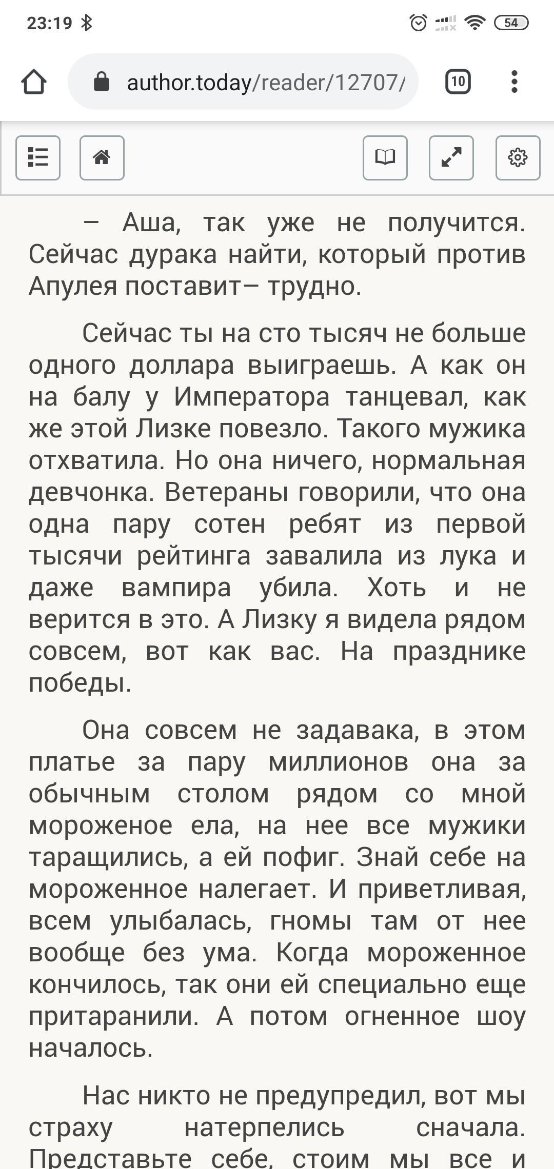Вот бывают книги которые хочется прочесть полностью и сразу , но уви.. спасибо за глави)