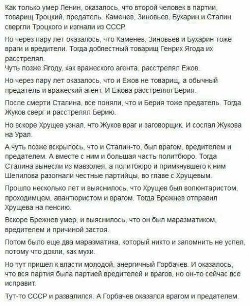 А насчет "развалили" - так все претензии к руководству КПСС и СССР. К самым коммунистическим коммунистам. Разваливали, сдавали и распродавали они. А Путину пришлось играть теми картами, которые у него были на руках в 2000м году.