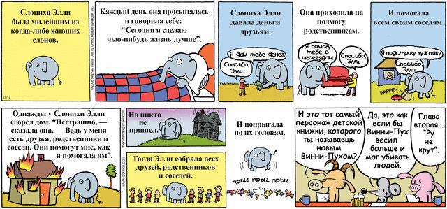 А с ответами трудно, ибо если детский мультик надо чтобы добро победило зло, а дальше все поют и танцуют. И никаких комиксов о слонихе Элли, да.