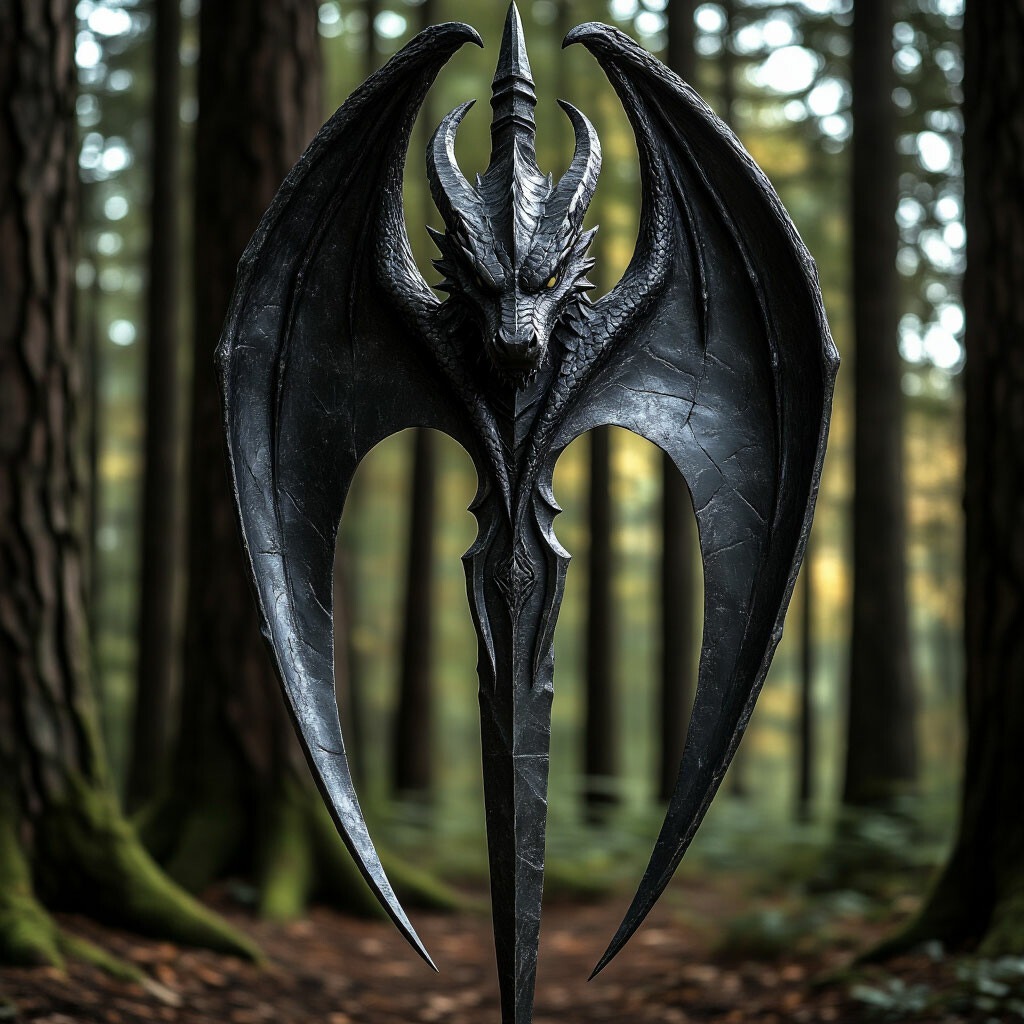 двуручный молот, представляющий из себя фигурку растопырившего крылья шипастого дракончика на длинном практически двухметровом древке. Несмотря на то, что темно-синего цвета ящер напоминал собою произведение искусства и казалось вот-вот взлетит со своей жердочки, в качестве ударного навершия эта статуэтка была вполне рабочей. Распахнутая пасть применялась для тупых ломающих ударов, отведенные в стороны крылья были заточены не хуже бритв и могли хоть рубить, хоть резать, ну а длинный хвост играл роль загнутого крюка, которым можно хоть подтянуть к себе кого-то, хоть вражескую броню расковырять.