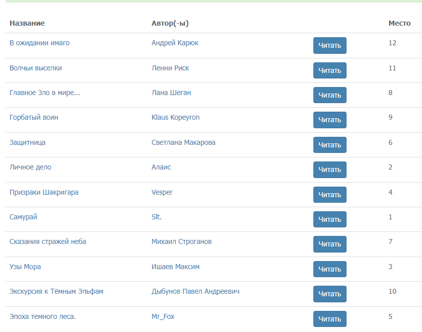 О, спасибо за 2 место) К сожалению мой рассказ оказался недостаточно хорош. Удачи всем прошедшим)