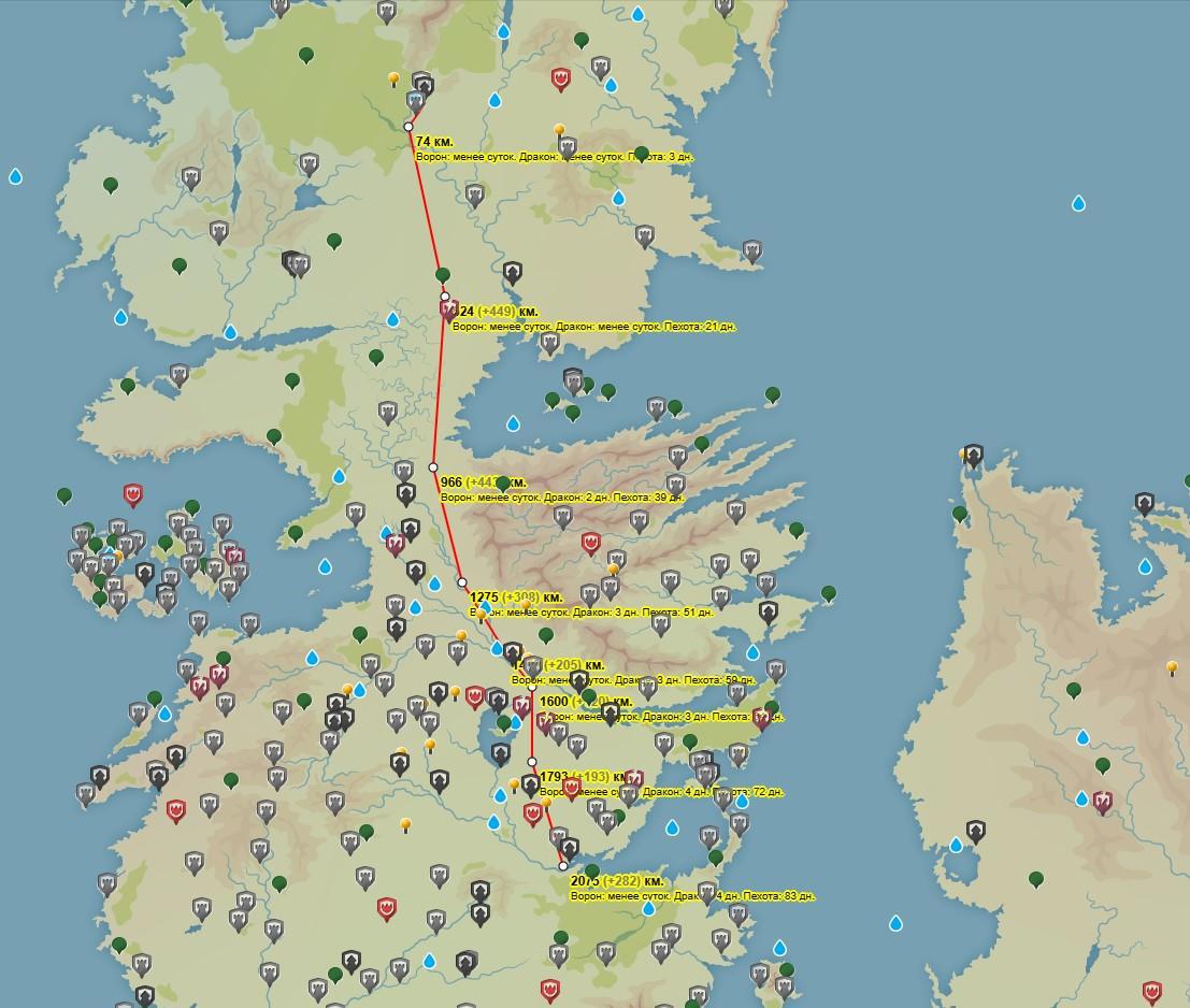 Но добраться из Винтерфелла до Королевской гавани за неделю? Это 2 с лишним тысячи км? Они что на пегасах путешествуют?