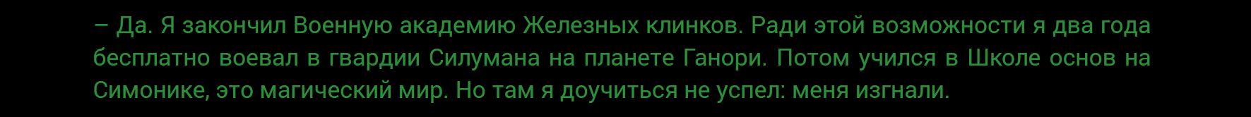 Но вот тут непонятки есть: как так, в Муравейнике ГГ говорит о том, что нельзя далеко отойти от места появления, а в Черных песках утверждает , что на планете Ганори воевал в каких-то там войсках? Ну не на одном же пятаке он воевал?