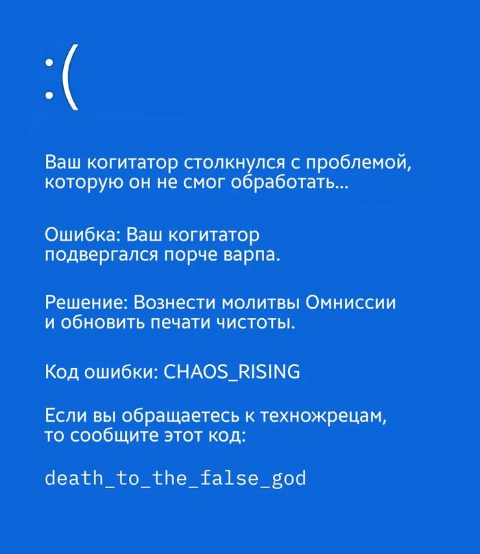 П.П.с зашел чисто иза описания и картинки , донос написал инквизиции , пойду подальше от етой ереси во имя Омнисии и Бога Машины