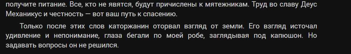 Так планета Механикус и он сам Механикус , они как бы конкренты по етому гг с ними не пересекается на корабле да и врядли у вольника на корабле много жрецов еклизиархии а еклизиархия в системе Механикус разве что проездом может быть а на каторге была строчка как каторжники удвились и вот она :