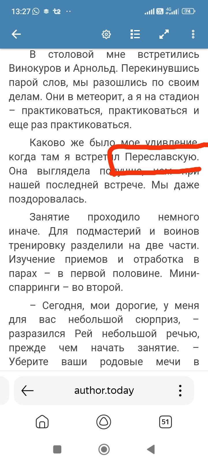 В 17 главе , то ли ошибка, то ли сумбур. Когда яяМихаил пришёл на стадион, написано, что встретил Переславскую, а дальше речь пошла про Анну. (Насколько я понял, то Анна Извольская, а Переславская это Виолетта) прям сбило с толку