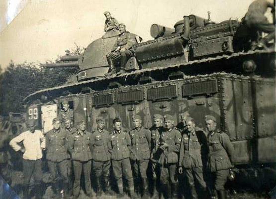 Да, да всё по сехретным документам. Эти же документы говорят, что эти машинки произведенные в количестве 12 штук были полностью уничтожены французами и не попали к немцам в ручки. Но меня смущают вот эти снимки. И это не всё, есть ещё снимки этого же 99 номера. Что-то она не выглядит уничтоженной. Да и судя по всему она использовалась, если судить по надписи на немецком на борту. И это только одна, а я насчитал ещё две три машины, но с ним непонятно на ходу они или нет или где они вообще находятся и кто их уничтожил.