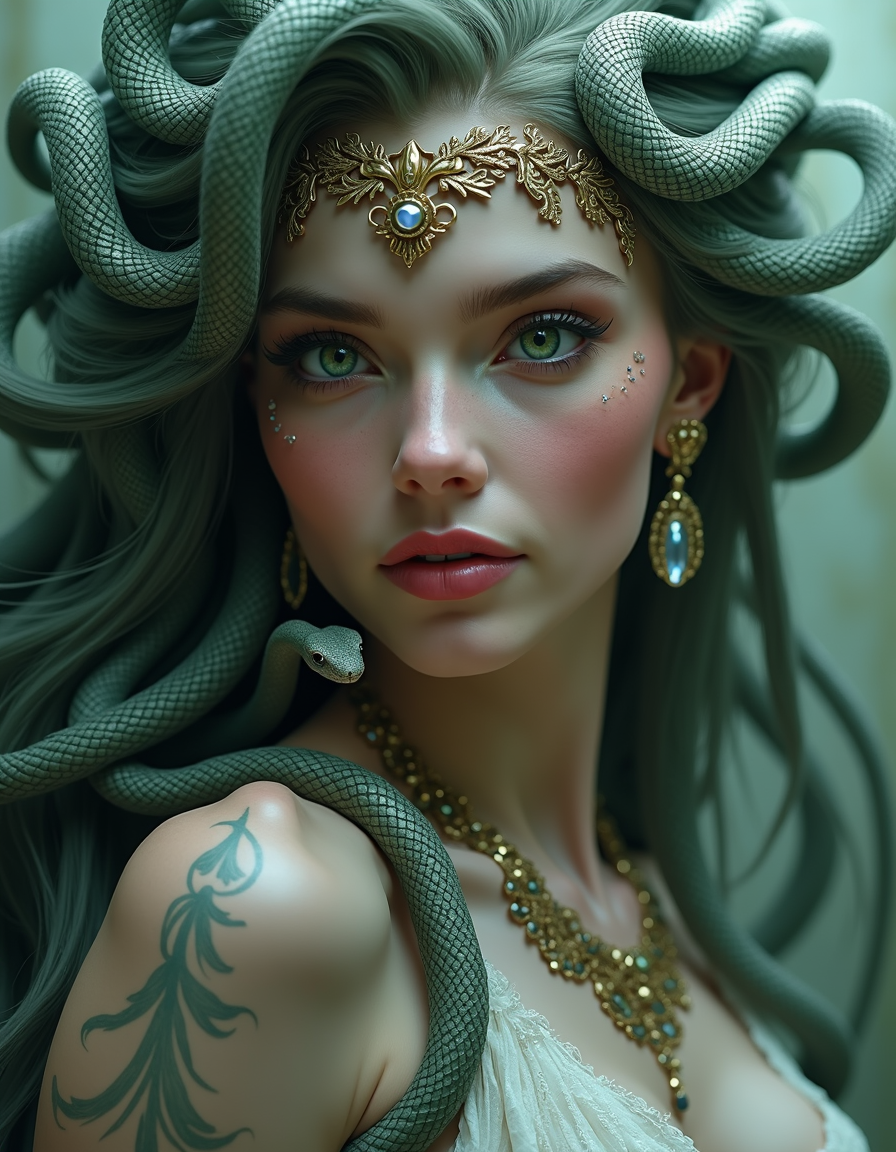 Эт, дааа... Придется перечитывать))) Фётру я просто считал посредством нейронки с вашей картинки и отправил промт на пожирание flux1)) SDXL змей на голове адекватно совсем отказывается рисовать))