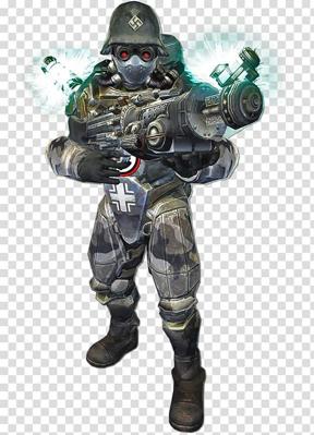 С собой носят расщепляющий луч(от врага остаётся пепел); Броня тяжелая, уязвииые места лампы на плечах(стравливают тень?) после их уничтожения на спине открывается бак с тенью(нехватка "охлаждения"?) после его уничтожения пехотинец расщепляется оставляя оружие.