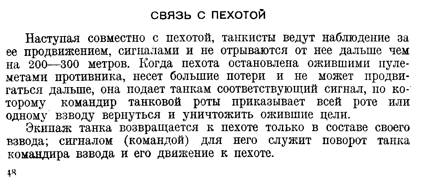 В ходе атаки по мнению "Пособия для бойца-танкиста" (1941, довоенный) взаимодействие пехоты с танками в наступлении сводилось к следующему: