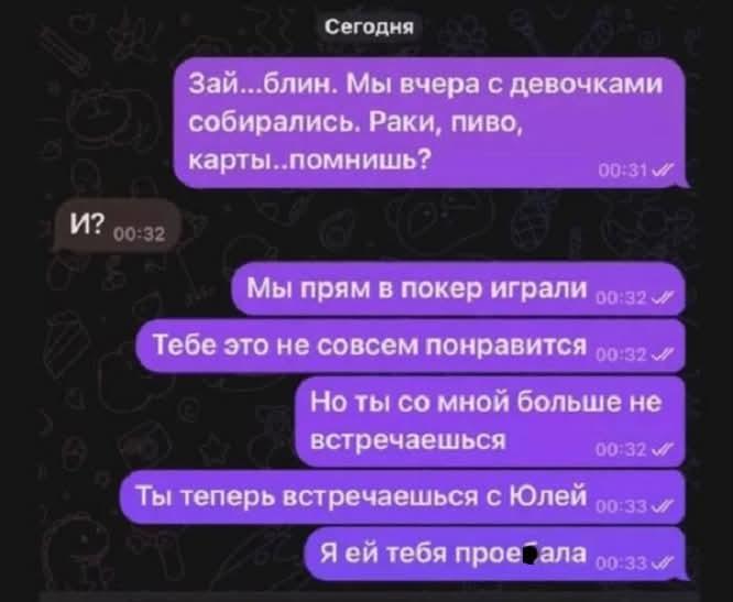 Мне больше понравился вариант, где кусок чебурека в декольте упал ))