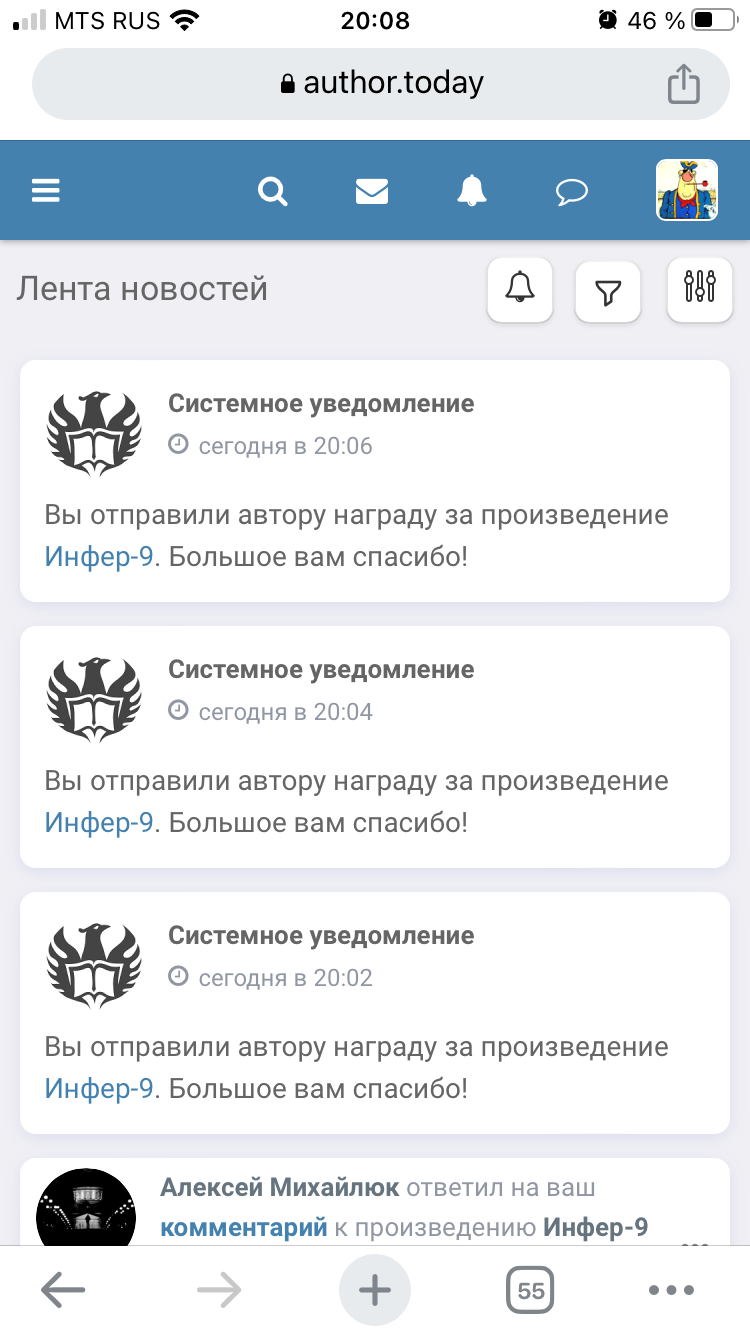 Как Вам послать этот сигнал?))Это лучший цикл!Читал многие Ваши произведения,Оди на 1-м месте!Каждый день захожу здесь на страницу книги,чтобы узнать,не появились ли новости по Инферу