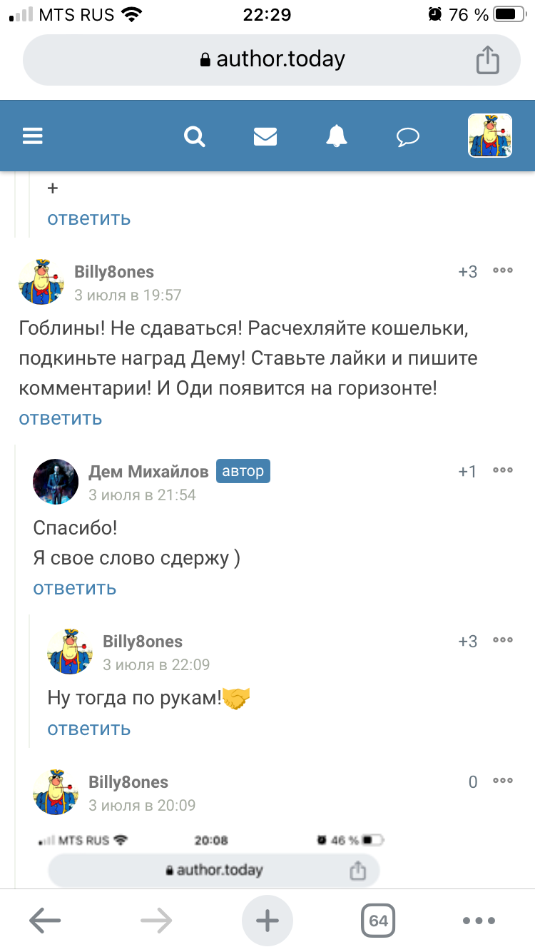 Гоблины! Не сдаваться! Расчехляйте кошельки, подкиньте наград Дему! Ставьте лайки и пишите комментарии! И Оди появится на горизонте!