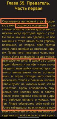 Давайте честно? Автор не умеет писать. Смотрим скриншот. Ощущение спустилось на первый этаж и создалось. Максим сидел за столом, потом перевел взгляд в другую рабочую область. Лиана (девушка) создалО себе гнездышко. Да, можно сказать что мы же поняли о чём идёт речь, но можно же и написать правильно. И подобное, а порой хуже, в каждой главе каждой книги десятками, если не сотнями, раз. К этому можно добавить, что книга годами так и лежит без исправлений. Да и сама книга - адаптация перевода на русский лЯд. Идея книги интересна, а написание ужасно.