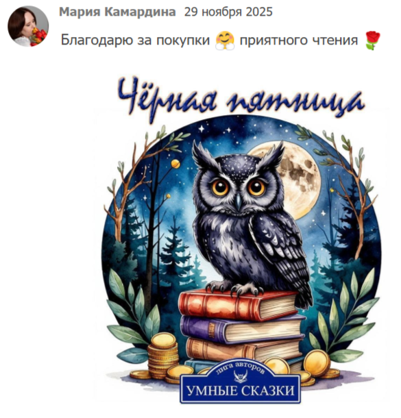 Прочитала ଘ(੭*ˊ ᵕ ˋ )੭* ੈ🤍‧₊˚ было интересно!
